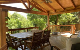 DeckTec completed this spectacular second-story deck redesign for a stunning home near the Bear Creek Golf Club in Lakewood, Colorado, marking more than 23 years of collaboration with the homeowner. The deck, crafted from rich Red Balau Mahogany hardwood, provides ample space for dining, relaxing and entertaining and has custom features and design elements throughout that enhance the home’s functionality and visual appeal. A Teak stain gives the decking a rich golden hue that the Colorado sun accentuates, and a custom railing incorporating a combination of wood, glass and fortress panels surrounds the deck, enhancing safety and aesthetics. Low-voltage lighting[...]